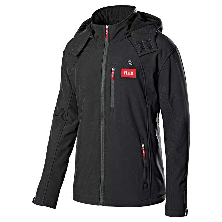 - Fűtött soft-shell kabát polár béléssel és levehető kapucnival