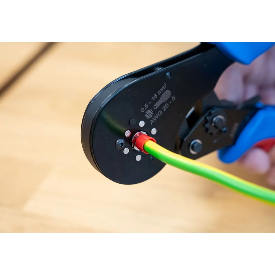 - Racsnis mechanizmussal rendelkezik, amely blokkolószerkezettel biztosítja az egyenletesen magas krimpelési minőséget és a pontosan megismételhető eredményeket
