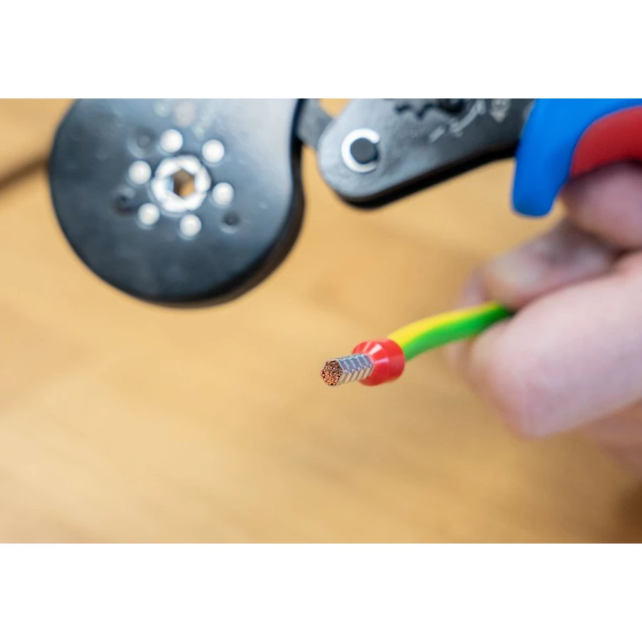 - Az önbeállítás a kívánt vezetékvég-horoghoz lehetővé teszi a gyors munkát különböző keresztmetszetekkel